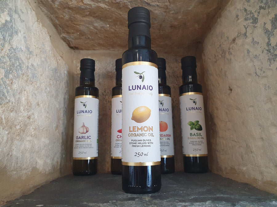 A lively, citrus cold pressed extra virgin olive oil, deliciously imbued with fresh lemon scent. Organically grown lemons are stonemilled together with Ogliarola olives to make this magical combination. This fragrant, versatile lemon oil is a delicious seasoning for fish, white meat, steamed and grilled vegetables. It also is a fantastic addition to sauces and salad dressings.