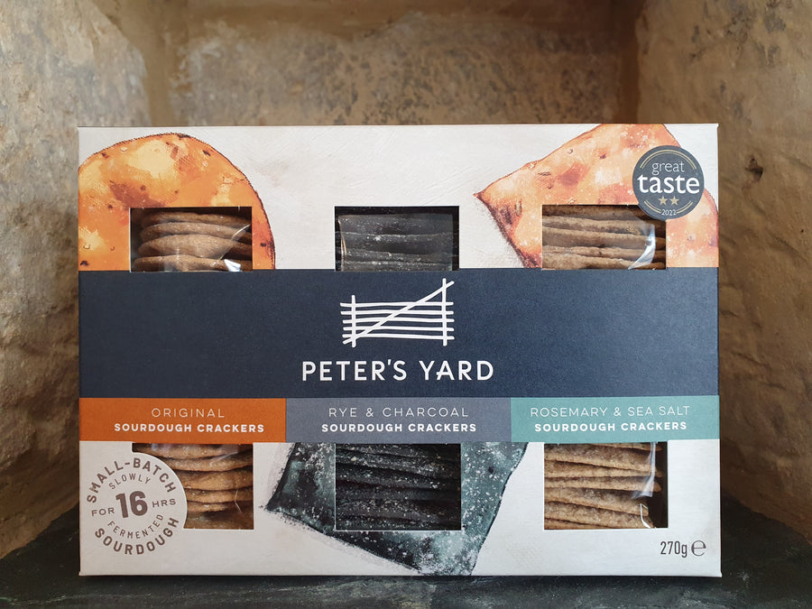 These sourdough crackers are made in small batches with their signature sourdough starter, which slowly ferments for 16 hours. They’re crafted from natural ingredients including Shipton Mill flour and organic fresh milk. This selection is designed to accompany any cheeseboard and contains three individually wrapped trays.