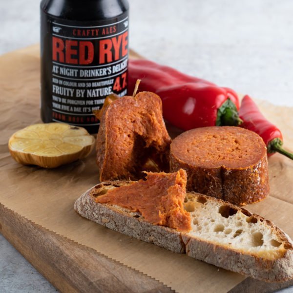 Ingredients: Pork, roasted red peppers, Hook Norton Red Rye Beer, salt, chillies, spices, muscavado sugar, dextrose, garlic, ascorbic acid, potassium nitrate.