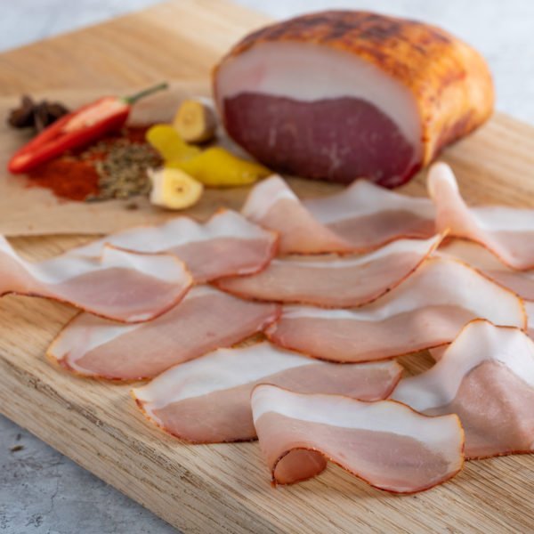 A nice layer of Fatback is left on this sweet, soft ham. Locally grown chillies, fennel, anise and lemon give a delicate spicing but it’s the quality of the pork that carries most flavour.
