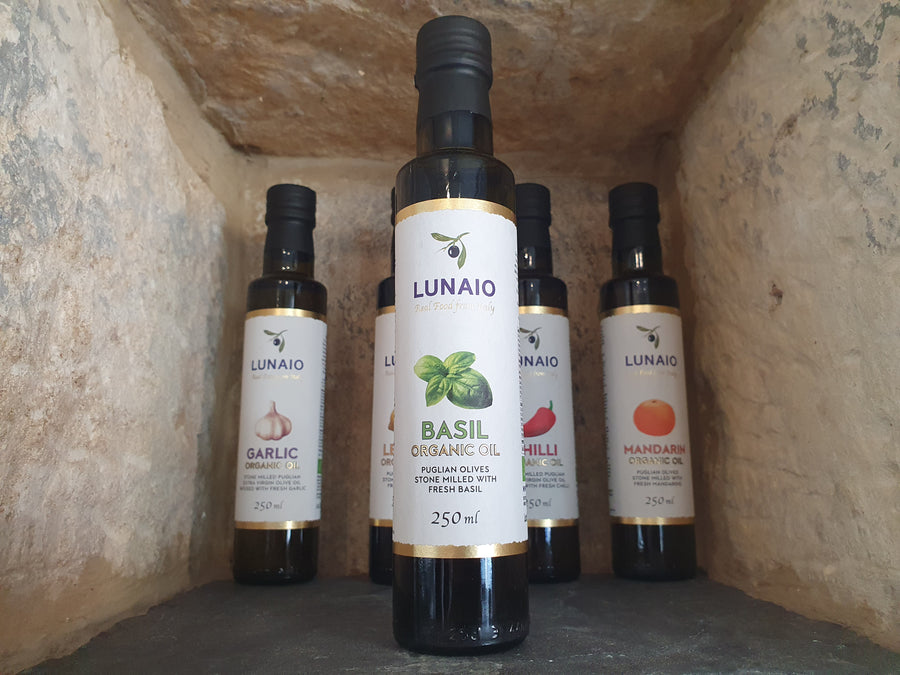 A rich, green cold pressed extra virgin olive oil deliciously infused with the scent of fresh basil, made for us in Puglia. Heaps of organically grown fresh basil leaves are stonemilled together with Ogliarola olives to make this magical combination. This fragrant basil oil has a quietly persistent aromatic scent which makes an irresistible pairing for pasta, fish and salads