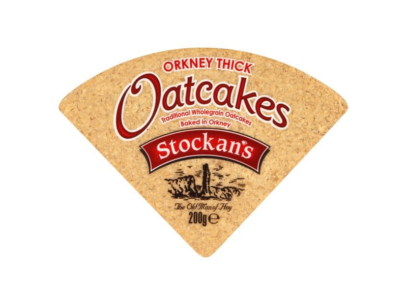Stockan's Thick Orkney Oatcakes - These Thick Oatcakes are made with coarse milled oats and are enjoyable on their own or with a variety of toppings. These come in a 200g packet.