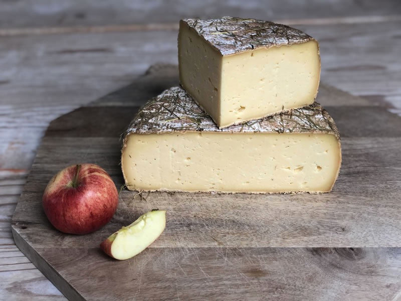 Semi-hard cheese which is aged in hay. Made by Nettlebed Creamery they are the first cheesemakers in the UK to age cheese in hay and it lends really interesting grassy and fruity elements to the rind.